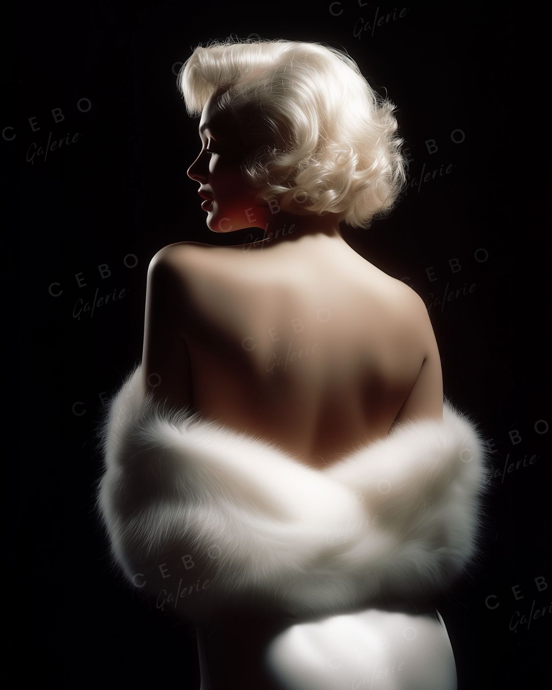 Dieses Werk spielt mit der Macht der Abwesenheit und der Kraft der Fantasie. Indem die Ikone ohne Blick dargestellt wird, transzendiert sie das Porträt und wird zu einem universellen Symbol: zeitloser Weiblichkeit, Hollywood-Glamour und vom Licht verstärkter Zerbrechlichkeit.