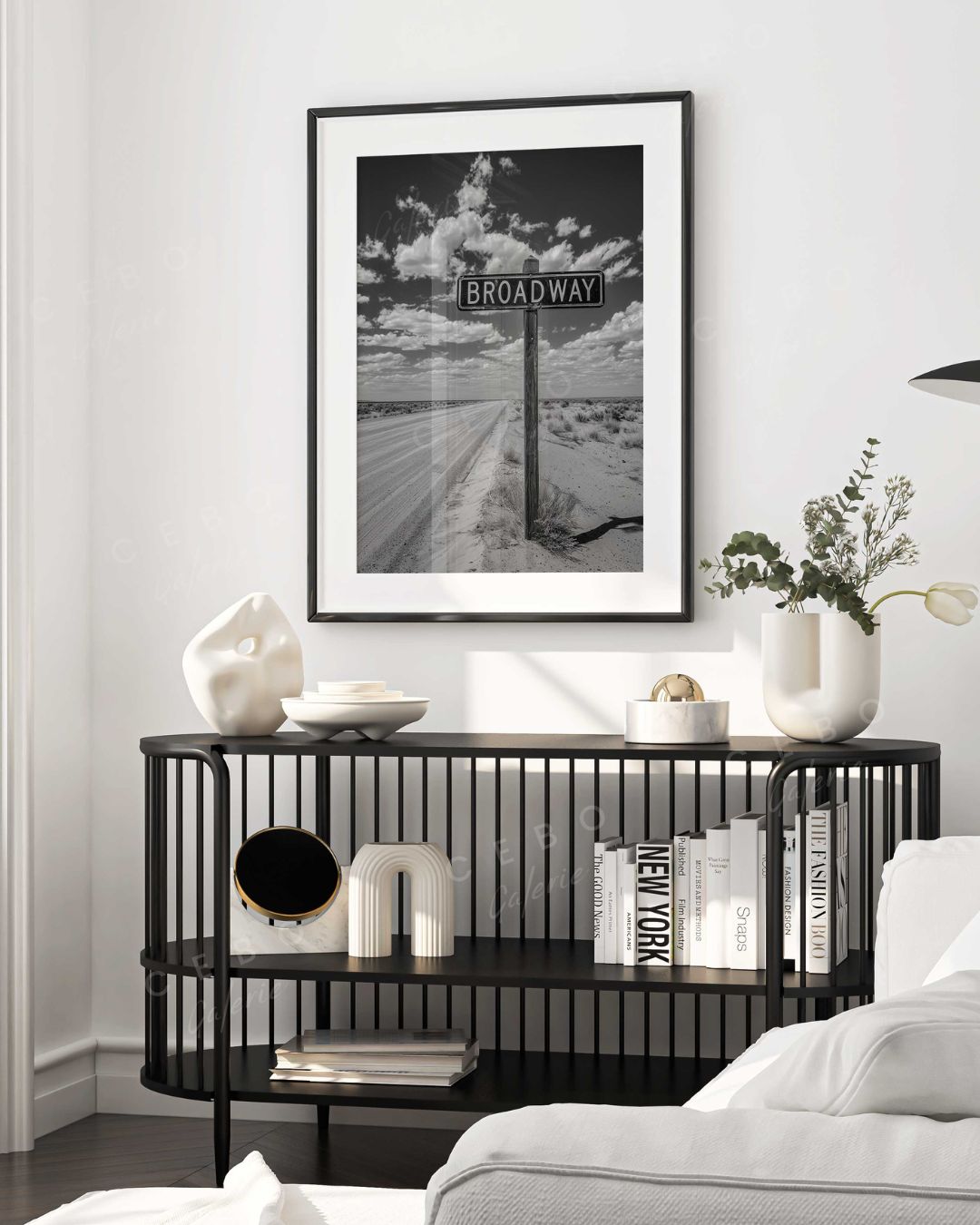 Imprimée en édition limitée sur papier d’art haut de gamme, Broadway Desert apporte un souffle de liberté et d’ailleurs à toute décoration moderne.