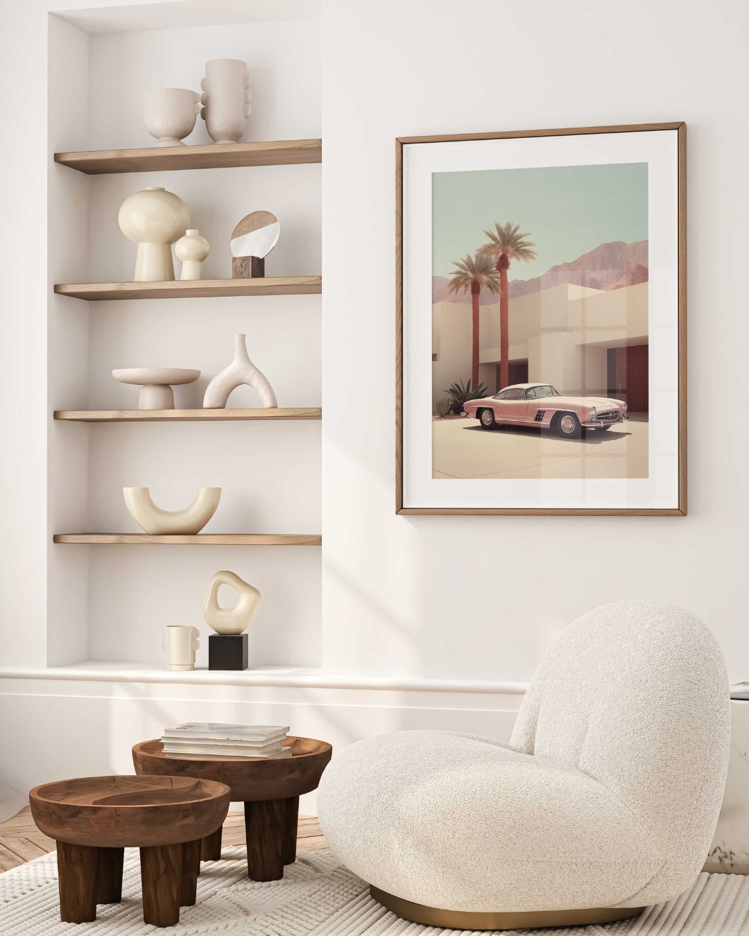 Cette affiche trouvera sa place dans un intérieur design, un espace inspiré par l’art de vivre californien ou une décoration à l’âme vintage et contemporaine à la fois. Elle évoque l’évasion, l’élégance, le silence doré des après-midis ensoleillés.